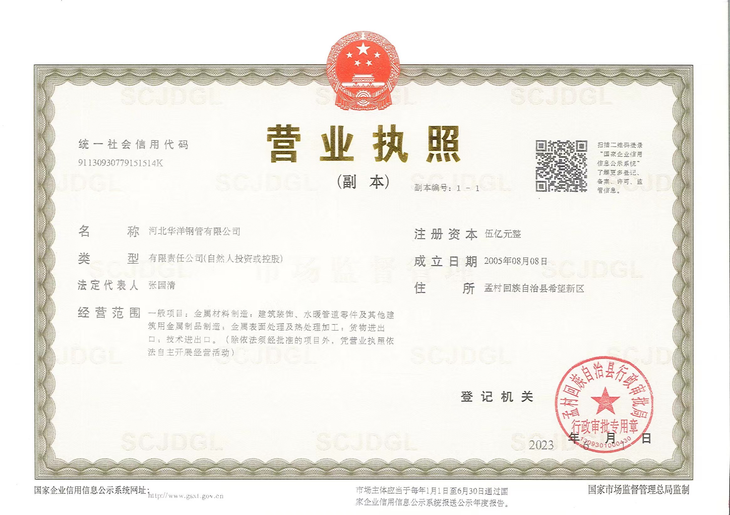 河北華洋鋼管有限公司公司創(chuàng)建于2005年,注冊資金5億元,公司占地面積1000余畝,固定資產(chǎn)12億元,年銷售收入近100億元,現(xiàn)有員工600余人。“華洋牌"高頻直焊鋼管被評為“河北省名牌產(chǎn)品”,年生產(chǎn)能力可達(dá)260萬噸,2024年河北華洋鋼管有限公司榮獲河北省百強(qiáng)民營企業(yè)(69位),河北省百強(qiáng)制造業(yè)(57位)榮譽(yù)稱號。