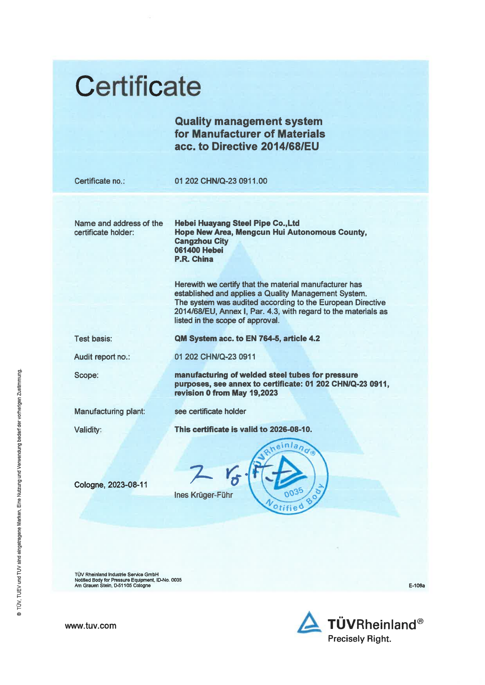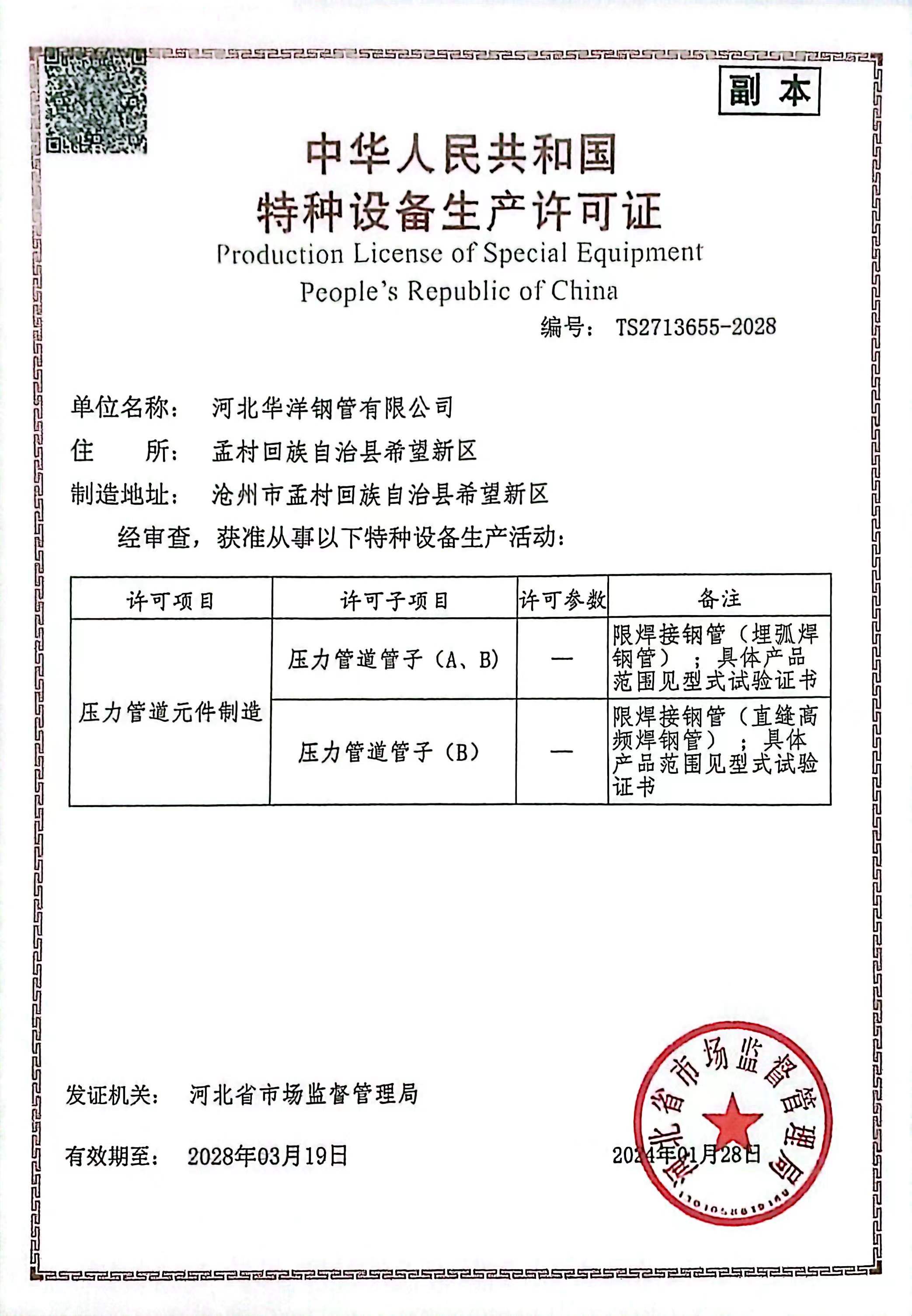 公司現(xiàn)有17條新型的自動化鋼管生產(chǎn)線,包括Φ73-660.4高頻直縫焊鋼管生產(chǎn)線14條、Φ406.4-Φ1422.4直縫雙面埋弧焊鋼管生產(chǎn)線3條,并配備有一條防腐生產(chǎn)線,可進(jìn)行3PE、2PE、FBE、2PP、3PP防腐處理,同時(shí)還可提供鋼管深加工服務(wù)。公司擁有先進(jìn)的理化實(shí)驗(yàn)室,可承擔(dān)鋼管的各項(xiàng)物理及化學(xué)檢測與試驗(yàn)。公司先后取得了ISO9001質(zhì)量管理體系認(rèn)證、ISO14001環(huán)境管理體系認(rèn)證、ISO45001職業(yè)健康安全管理體系認(rèn)證、特種設(shè)備制造許可證、API5L和API2B認(rèn)證證書、歐盟CE認(rèn)證、俄羅斯GOST認(rèn)證、中海油入網(wǎng)證、安全生產(chǎn)標(biāo)準(zhǔn)化二級企業(yè)等標(biāo)準(zhǔn)質(zhì)量體系認(rèn)證。